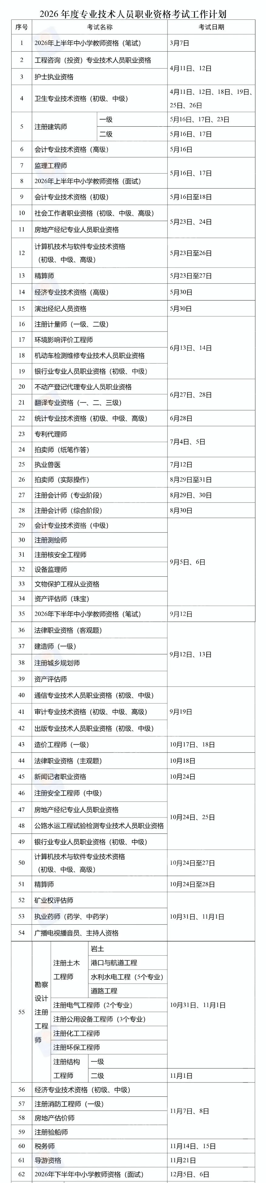 近日,人力资源社会保障部办公厅印发《关于2026年度专业技术人员职业资格考试工作计划及有关事项的通知