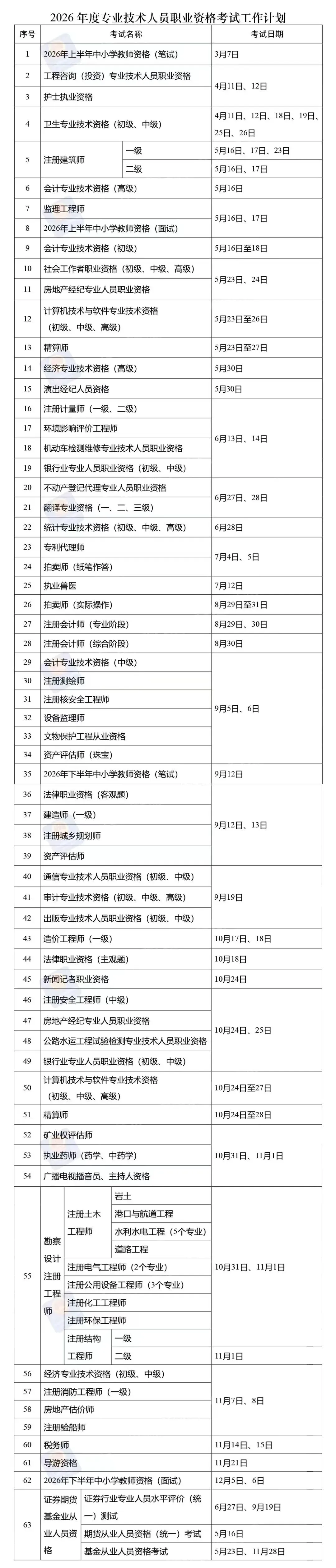 关于2026年度专业技术人员职业资格考试工作计划及有关事项的通知》