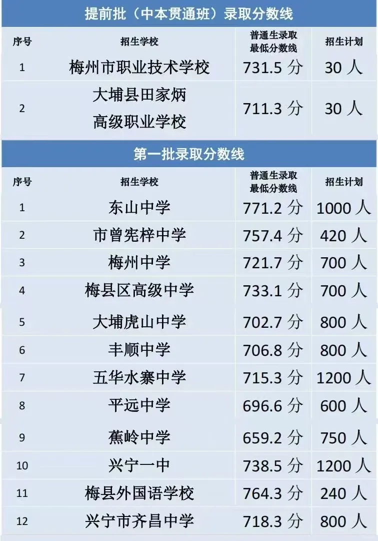梅县区高级中学 | 733.1 | 730-738 | 优质公办,名额分配生面向梅县区+市直属初中 |