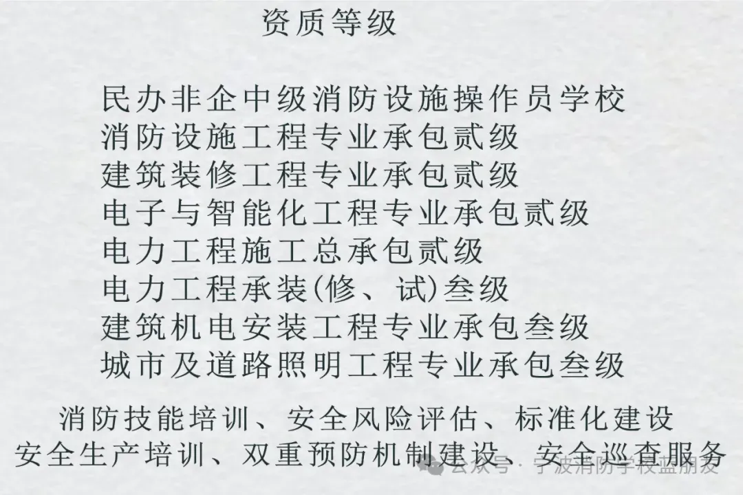 二、报名电话:0574-87382119 ,消防职业培训、消防安全评估、安全标准化建设、消防检测维保、消防工程改造、专职消防队组建、消防工程加盟合作:13857823123张校长