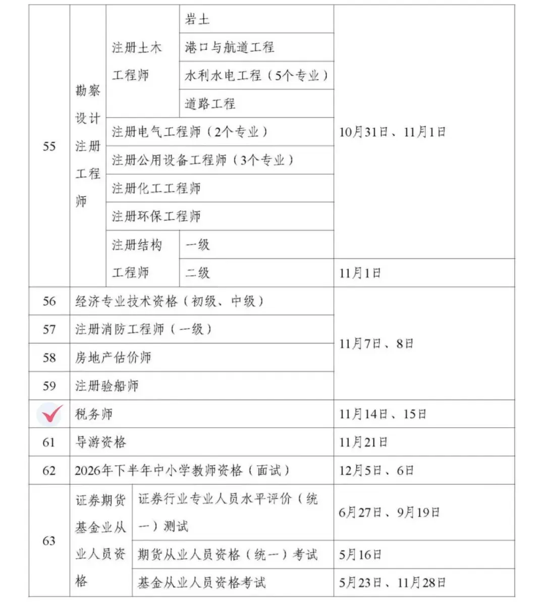 2月3日,人力资源社会保障部办公厅印发《关于2026年度专业技术人员职业资格考试工作计划及有关事项的通知》。