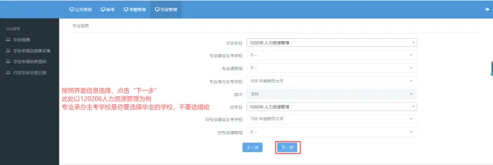 PS:专业承办主考学校是你要选择毕业的学校,不要选错哈