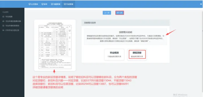 思政课顶替、对应顶替这两栏的科目,系统会自动根据你的旧计划科目进行顶替,只需要点“下一步”;