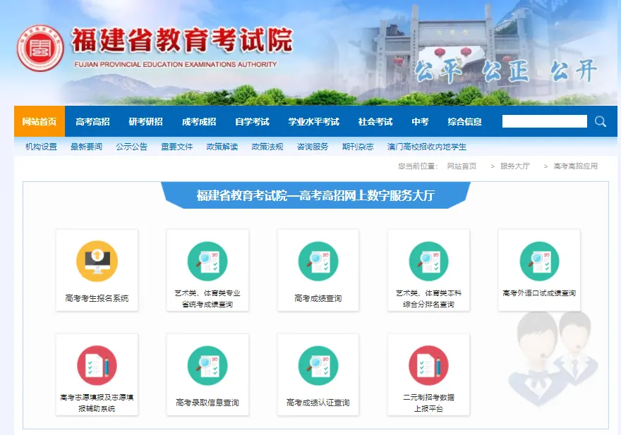登录福建省教育考试院(http://www.eeafj.cn/)进入“数字服务大厅”—“高考高招”