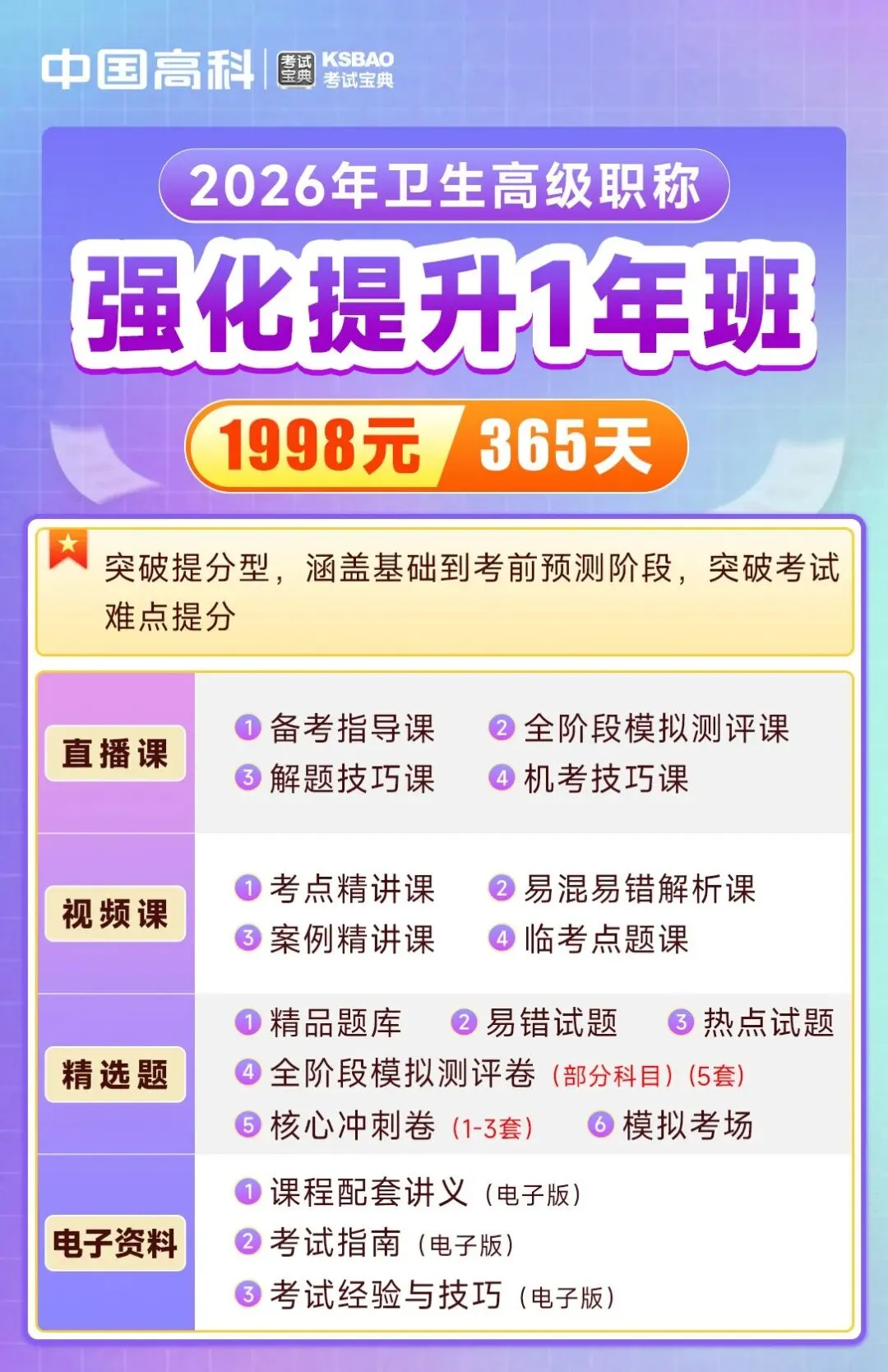 复习没方向?考试宝典卫生高级【强化提升班】精准适配上海社区卫生高级职称考试!核心考点精讲+案例精讲课攻克重难点,考前临考点题、易混解析+冲刺卷加持,助你从容应考、高效提分!