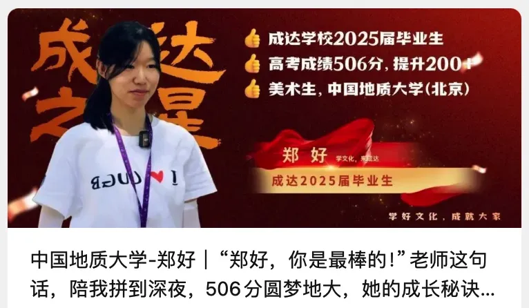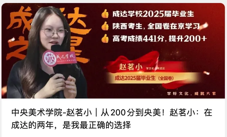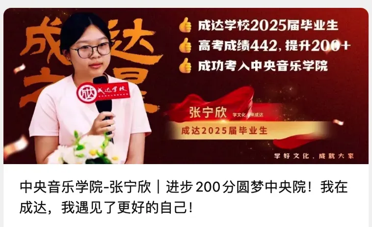 为分享成功经验,激励更多艺术生突破文化课瓶颈,我们隆重推出【好学校用分数说话】系列专题报道!持续分享2025届【真实学员的逆袭故事与提分轨迹】,用看得见的进步,诠释成达23年专注艺术生文化课的深厚积淀与教学成果。敬请关注本系列,汲取榜样力量,见证分数飞跃!