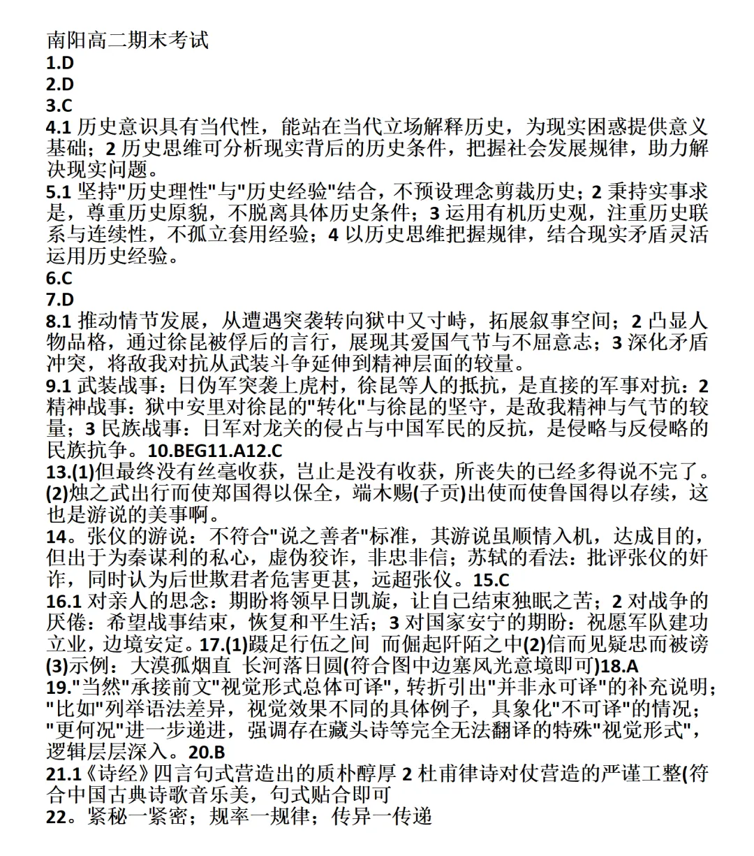 16.1对亲人的思念:期盼将领早日凯旋,让自己结束独眠之苦;2对战争的厌倦:希望战事结束,恢复和平生活;3对国家安宁的期盼:祝愿军队建功立业,边境安定。17.(1)蹑足行伍之间 而倔起阡陌之中(2)信而见疑忠而被谤(3)示例:大漠孤烟直 长河落日圆(符合图中边塞风光意境即可)18.A