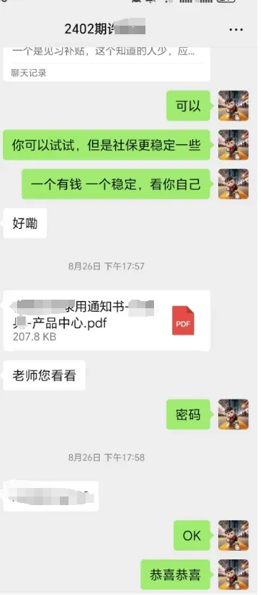 Q同学,郑州一所二本学校地理信息科学专业,整个学校就这一个班,大部分都考研了,Q同学对开发感兴趣,想找相关的岗位。来到新中地学习后,以应届生的身份拿到3个offer,最后去了一家浙江月薪8000的岗位。