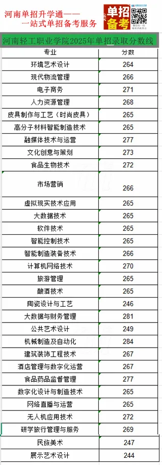 >2025年河南单招录取分数线——河南轻工职业学院