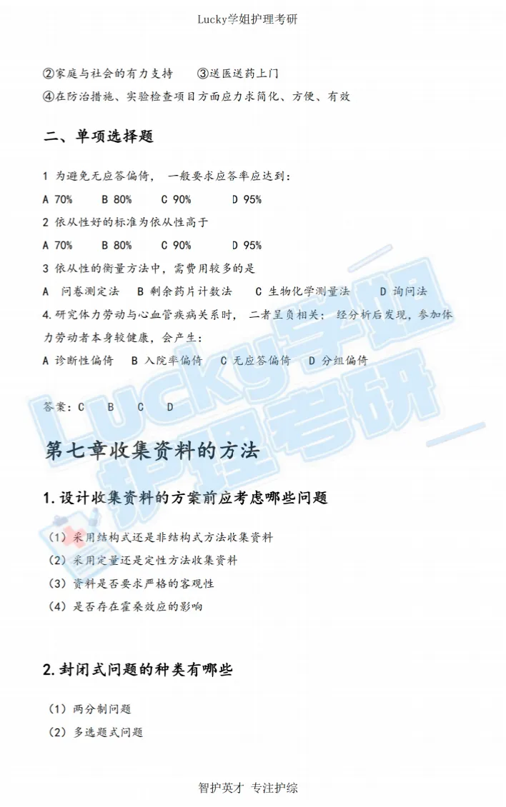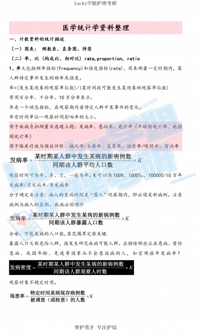 面对参考教材时,建议自己在一个集中的时间段划出书本的知识框架,或直接买上岸学长学姐做的笔记,然后用我们的复试资料中的「护理研究 + 医学统计学高频考点」去梳理更详细的知识框架,这两类是复试笔试和问答的核心模块,资料中已筛选出常考知识点、计算公式、答题模板,能够帮你从0-1建立这两本书最全的知识库!