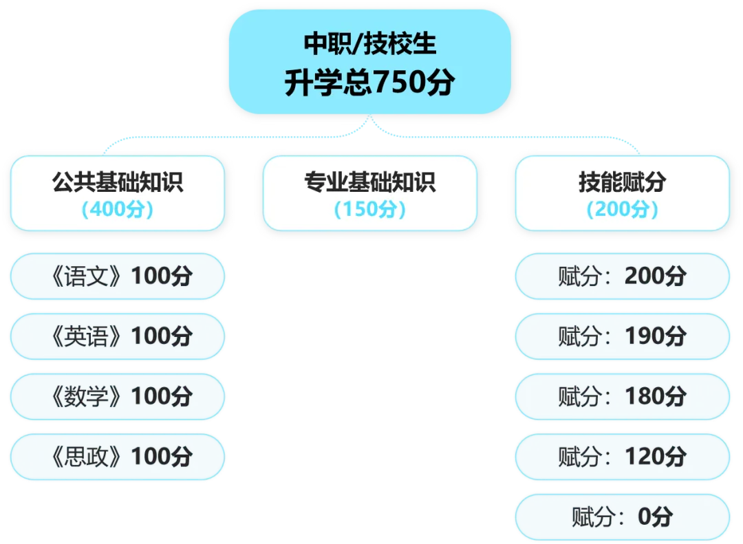★考生取得的职业技能证书、技能竞赛证书或学校职业技能测试类别需与报考的招考类别相关,方可赋分。