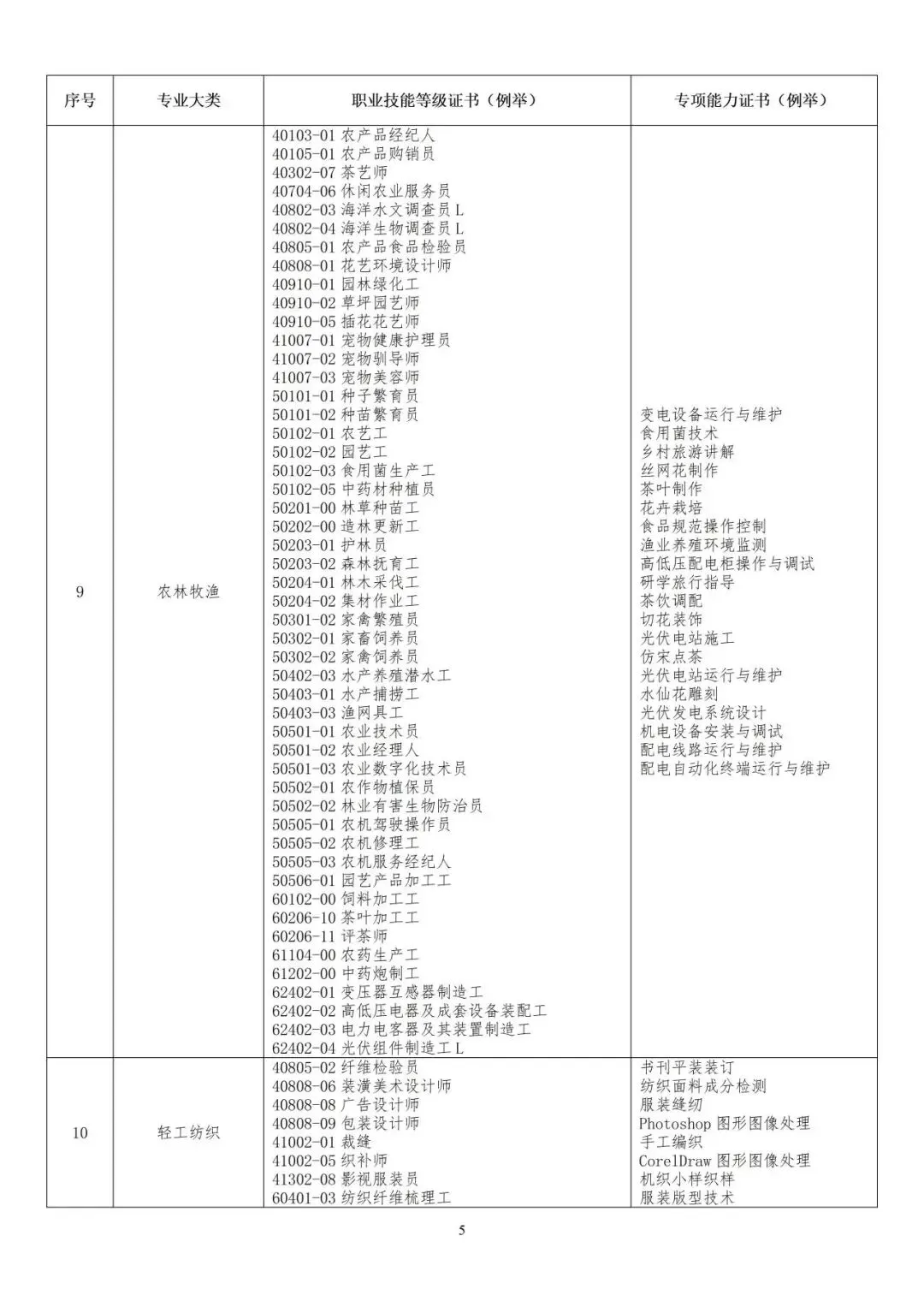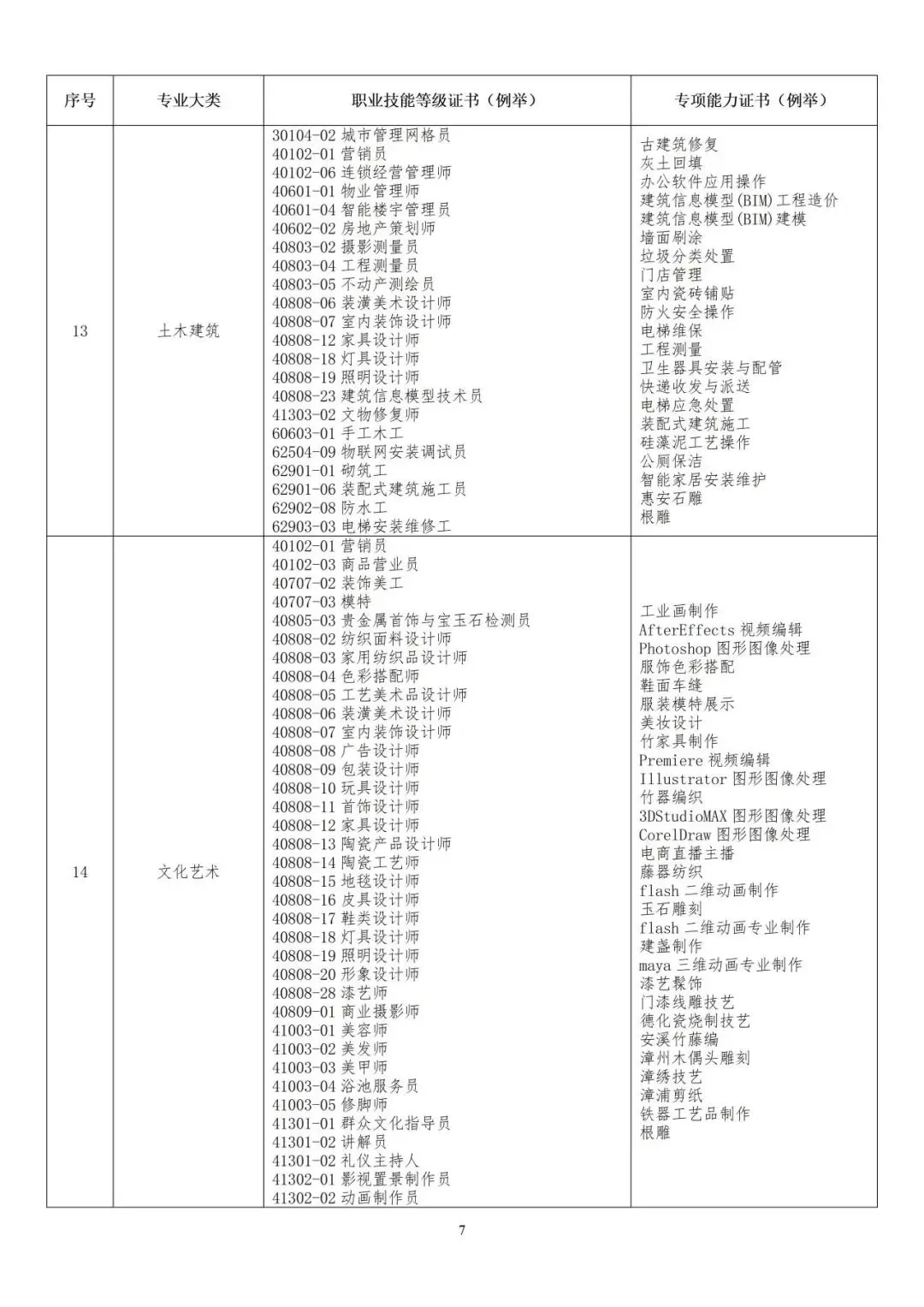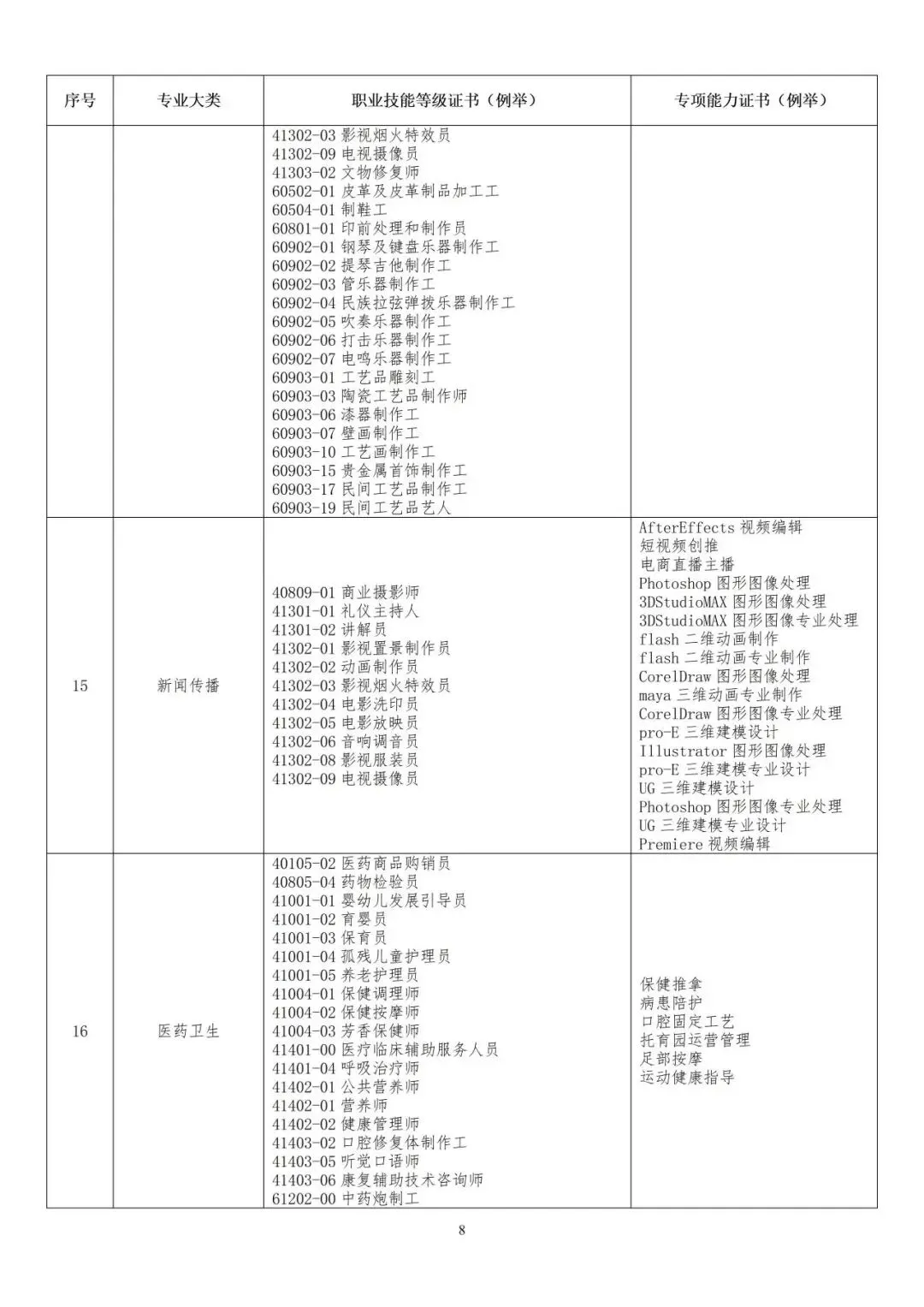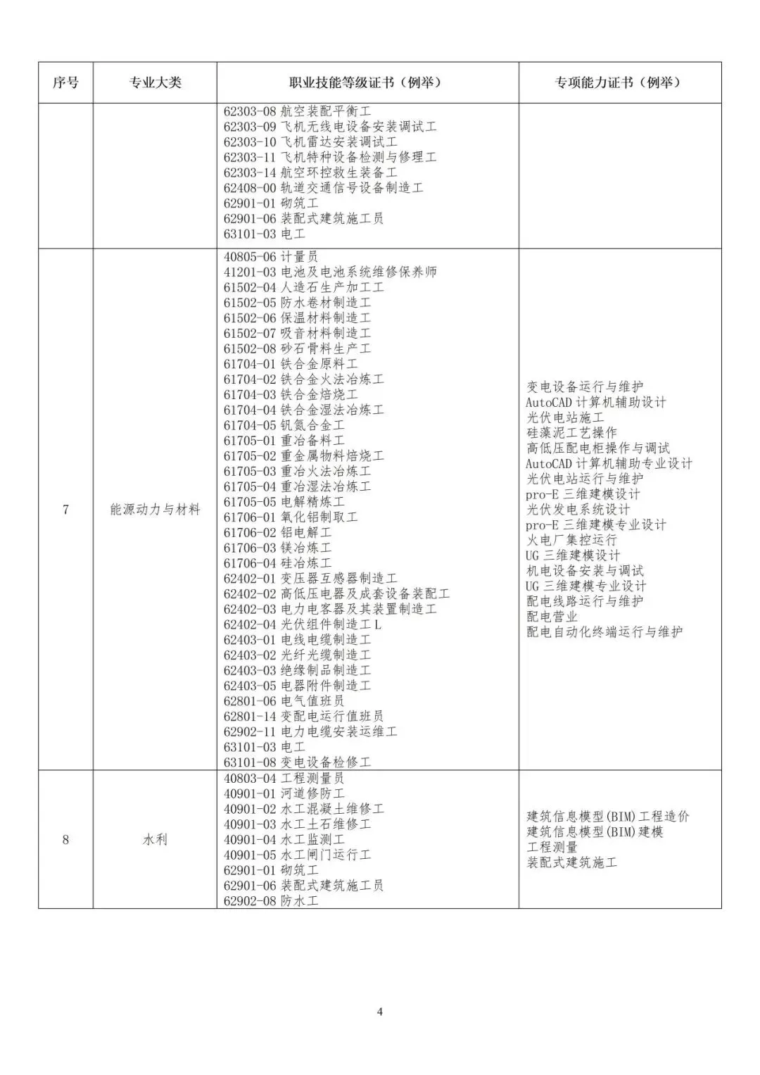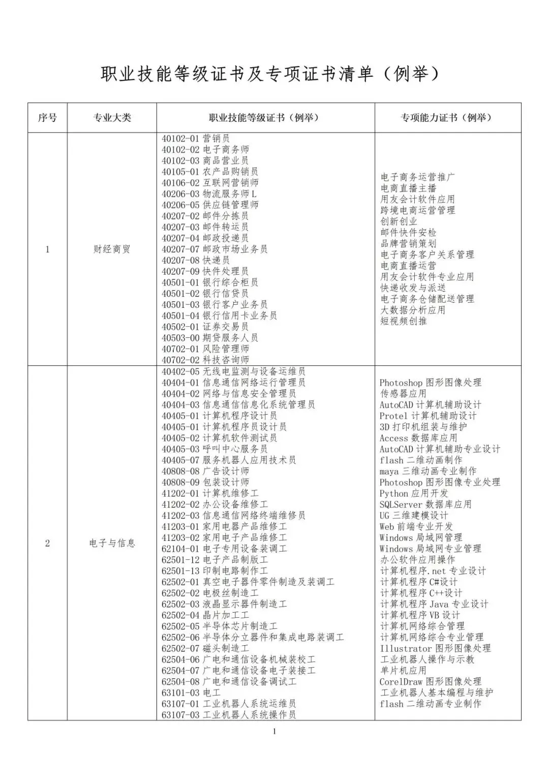 ★对口职业技能等级证书及专项证书清单如下: