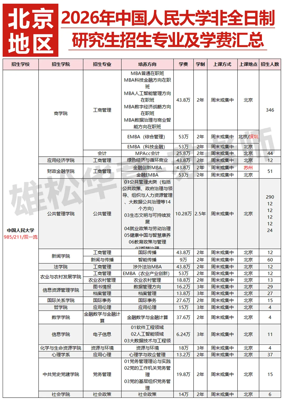 中国人民大学2026年在北京、苏州、深圳招收非全日制研究生,苏老师为宝子们汇总如下↓