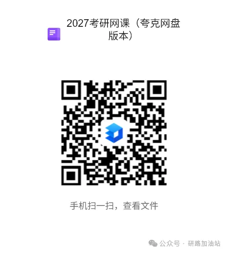 扫二维码保存获取,(更新也在二维码里面更新)不是试看两分钟,要保存才能看。由于链接容易失效,如果失效:后台发送:27考研网课-更新中