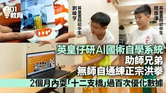 根据《香港01》的新闻报道,Band1男校英皇书院的学生们,在课程组老师的指导下,将AI技术与国术相结合,建立了AI系统辅助同学练习洪拳,丰富了学习路径。而英皇书院同学会小学早在几年前就引入了AI科技教育,让学生学习Python、Tensorflow等人工智能软件,了解机器的文字、图形和语音识别技术,为学生未来与AI共融奠定了坚实基础。