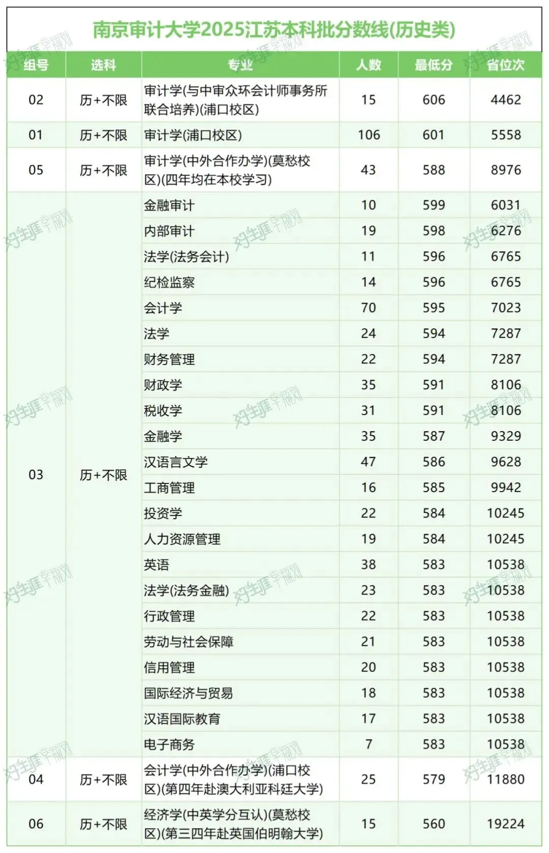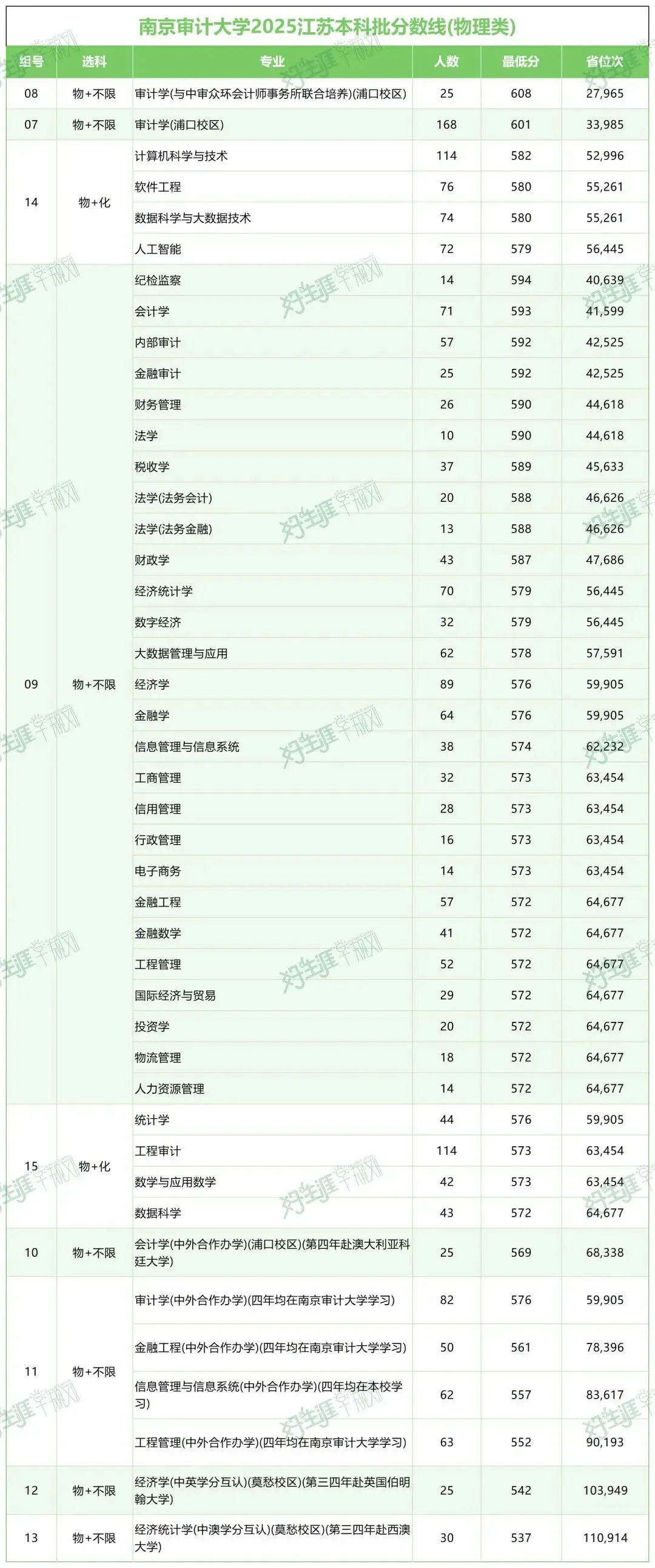 最低537分!南京审计大学2025年江苏录取专业分公布!