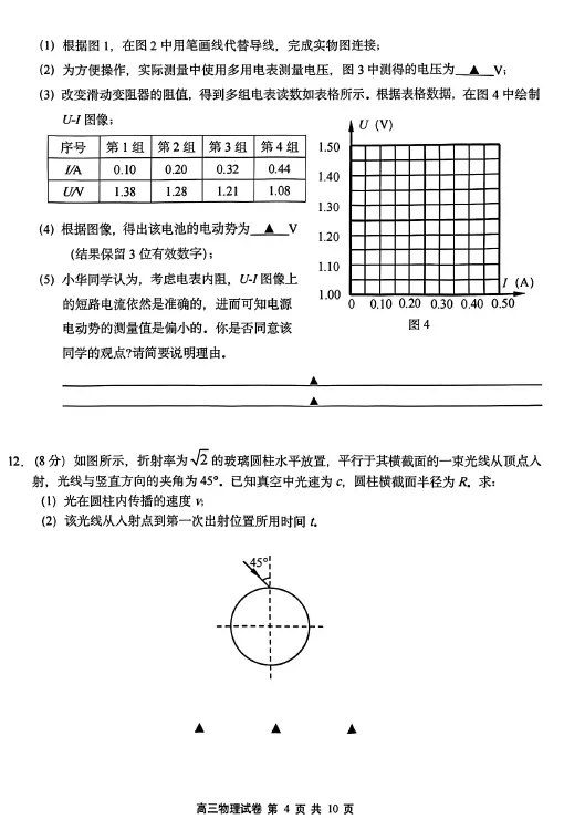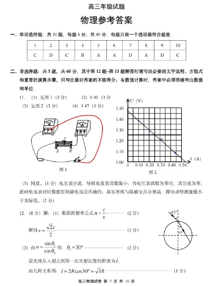 >2026年无锡市高三上学期期末考试物理试卷、答案+评分标准