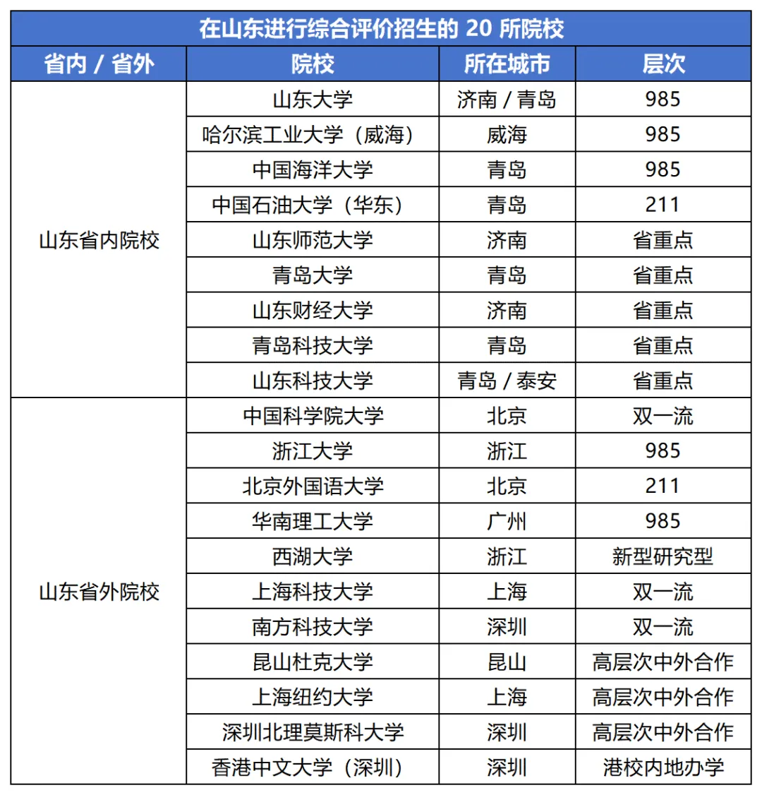除了以上学校外,此前,西湖大学发布消息:2026年,西湖大学首次面向山东省开展综合评价招生。招生专业为数学与应用数学、物理学、化学、材料科学与工程、电子信息工程、人工智能、生物科学、临床医学。具体招考信息与招生简章,可关注西湖大学微信公众号,或西湖大学本科招生网
