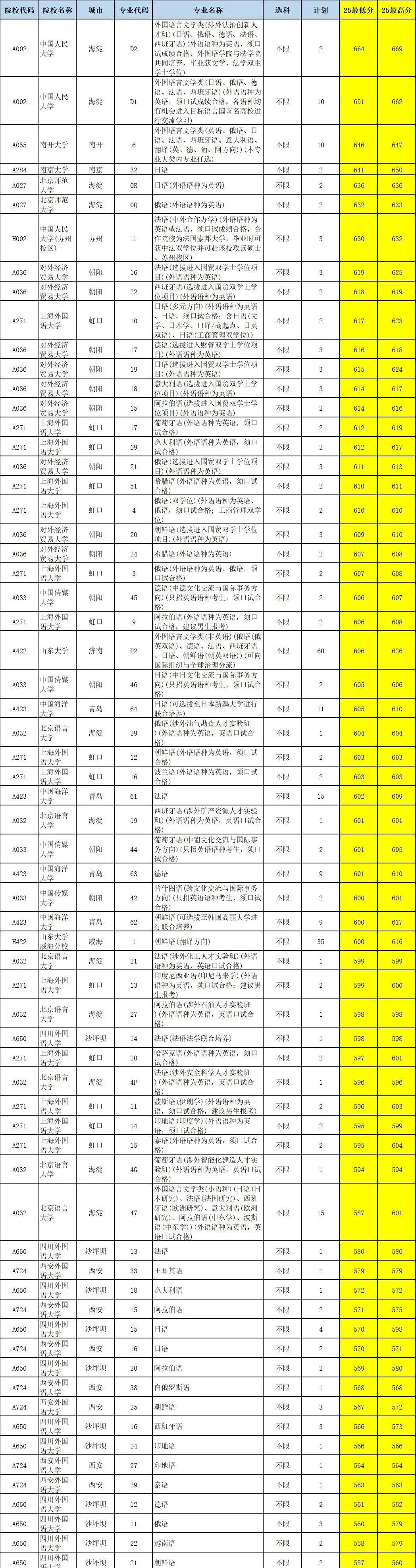 小语种、海关等)