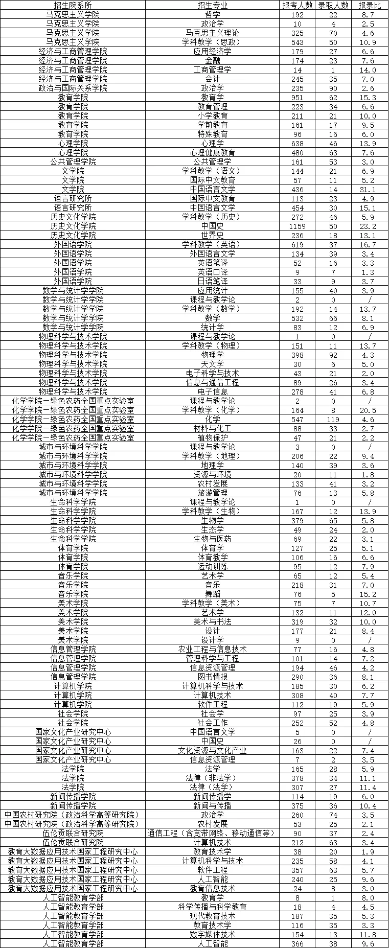 当前位置:首页>录取分数线>研呱呱|华中师范大学2025年考研报录比