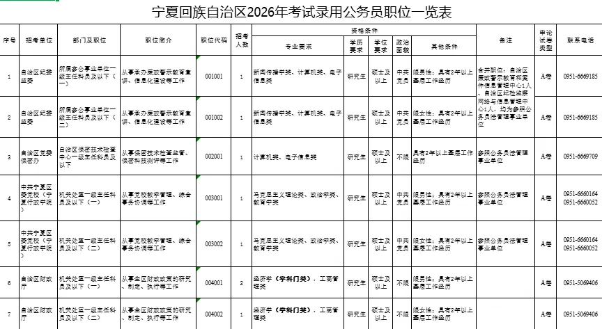 2026年宁夏省考岗位表链接: