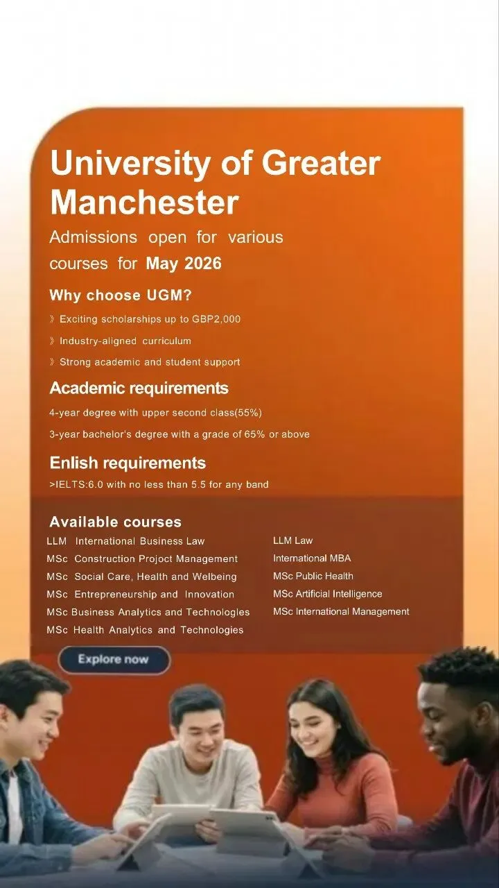 #英国留学 #大曼彻斯特大学 #2026招生 #硕士申请 #奖学金 #家长必读 #国际教育 #就业导向留学