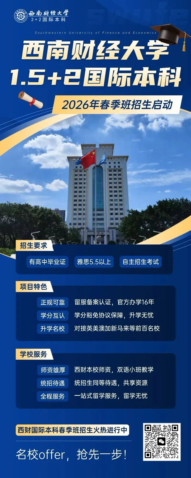 西南财经大学国际本科项目,升学稳妥性+留学性价比兼备,正是面临高考升学难题的学生家庭不二之选!