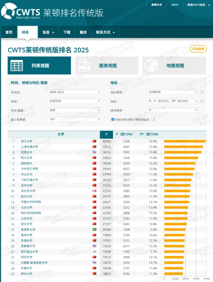 | 完全排除大学声誉、雇主评价等主观因素,数据源自 Web of Science(传统版)或 OpenAlex(开放版)权威数据库,聚焦论文发表与引用情况,公开透明、难以造假。 |