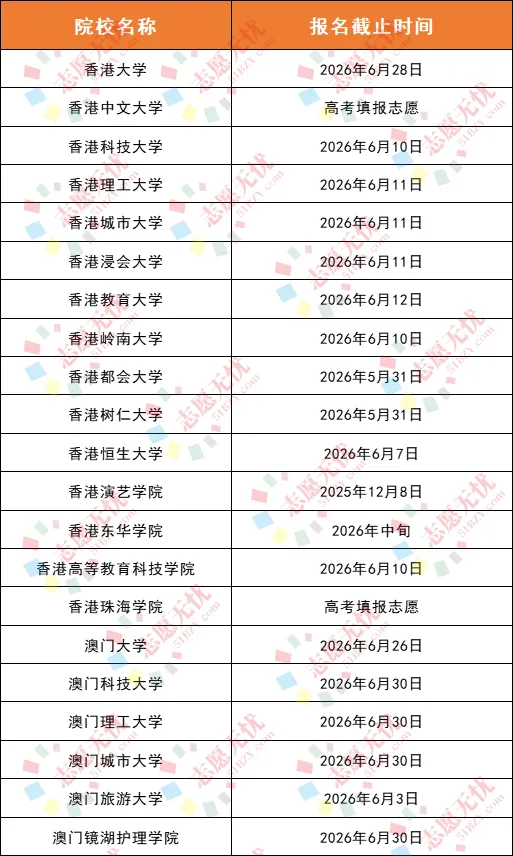招生目前,15所香港高校和6所澳门高校均已发布2026年招生简章并同步开启报名!其中,只有香港中文大学和香港珠海学院为统招,其余院校均采取独立招生模式。各院校网申截止时间如下: