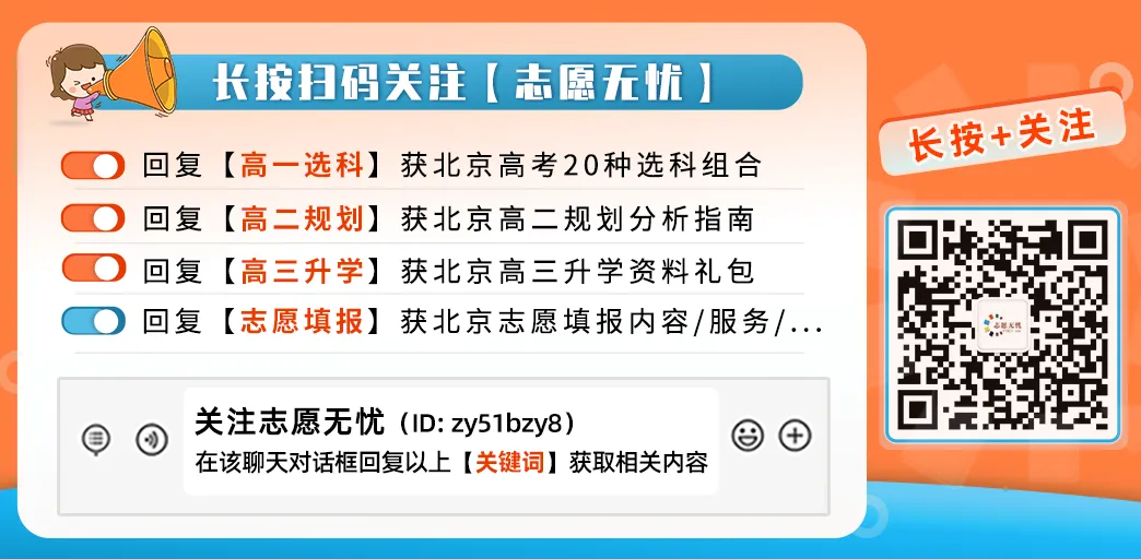 【温馨提示】志愿无忧为方便各位同学交流备考北京高考各年级群已建好,最新最全北京高考政策、综评强基、志愿填报、艺术体育、军校报考等重要信息。进群方式: