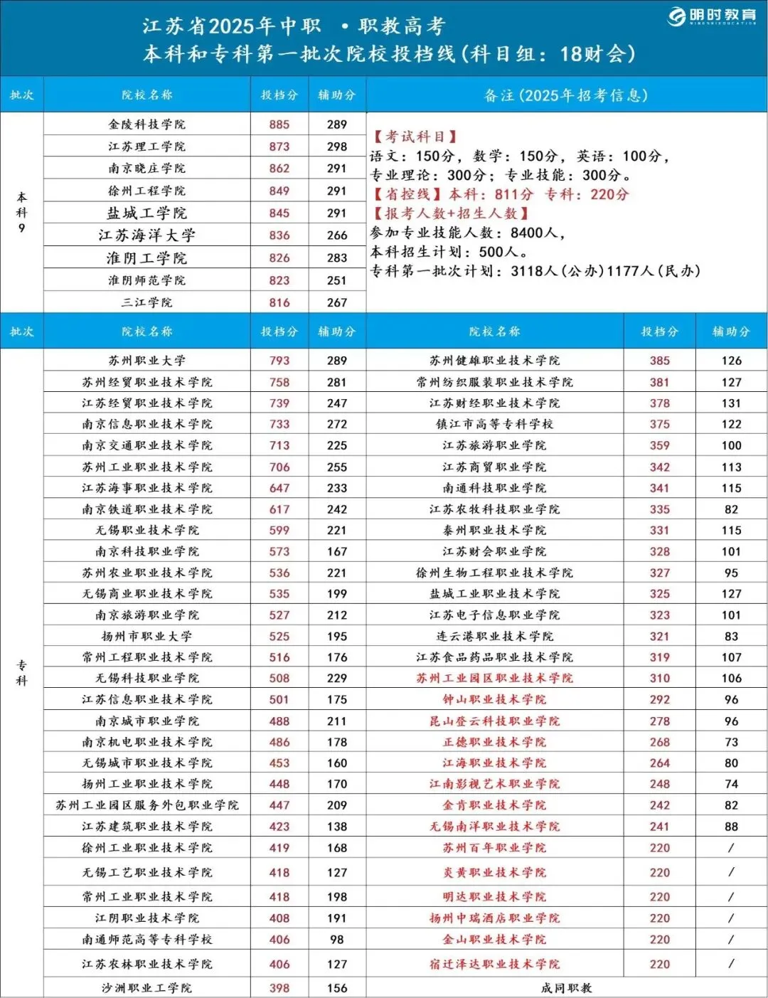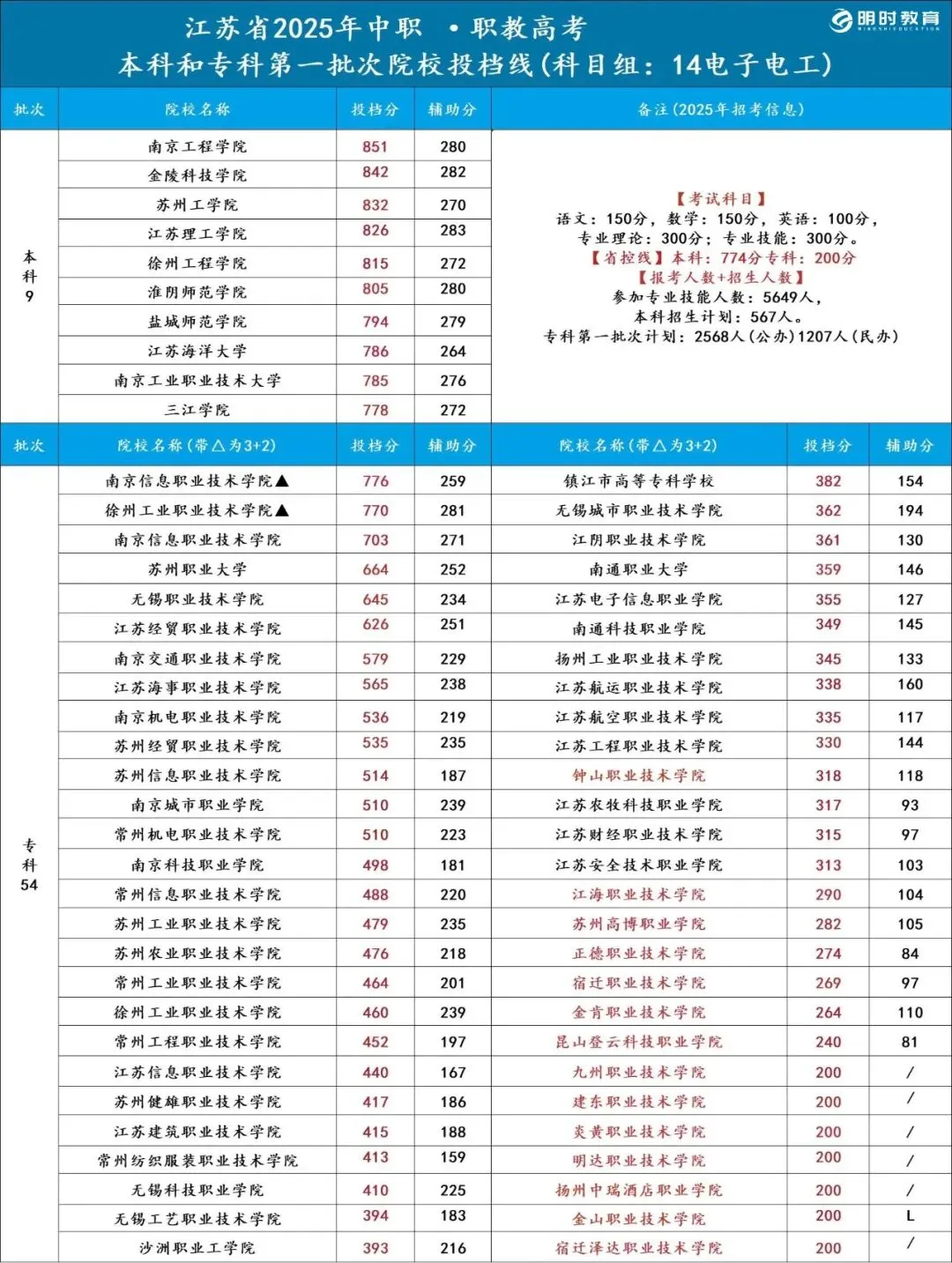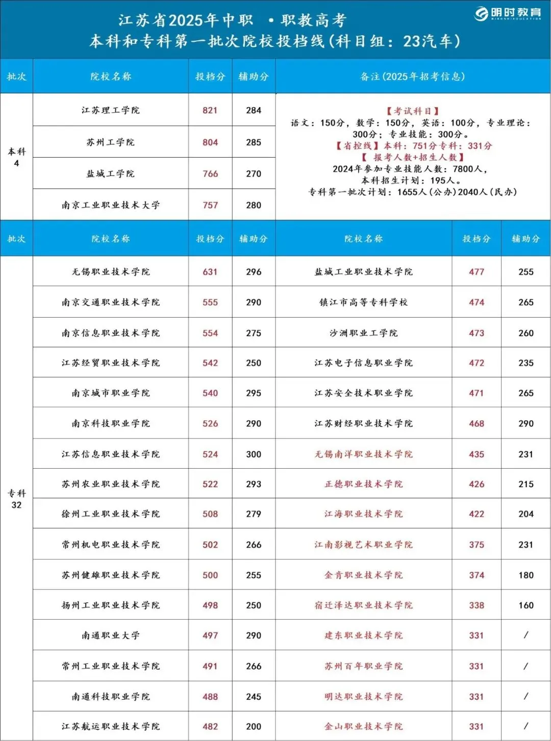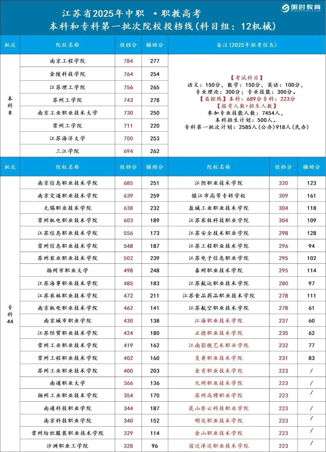 >25江苏职教高考各科目组院校录取分数线汇总!