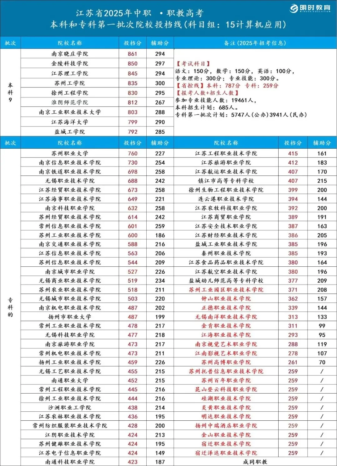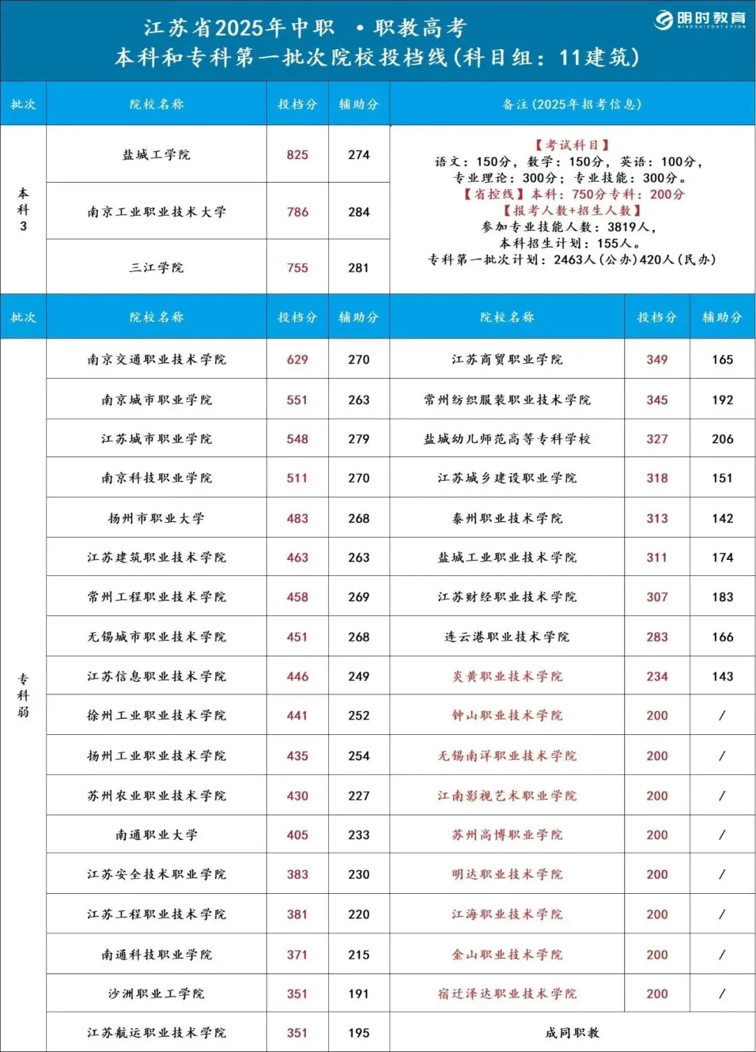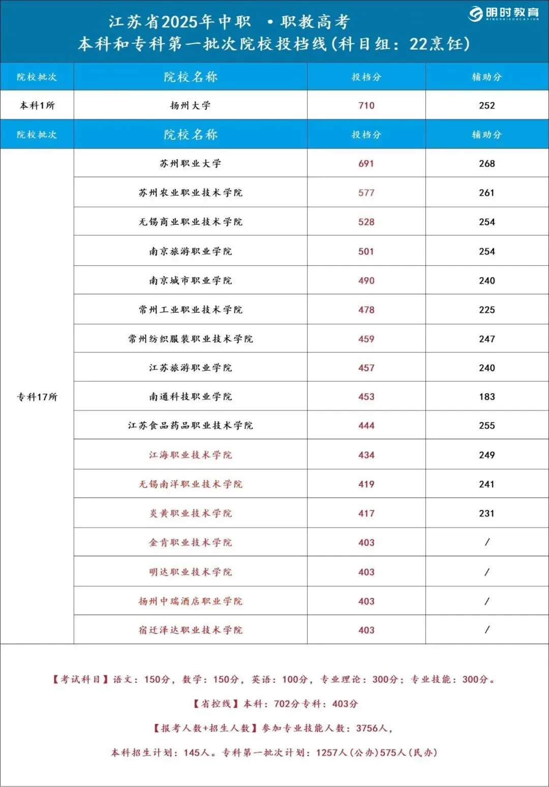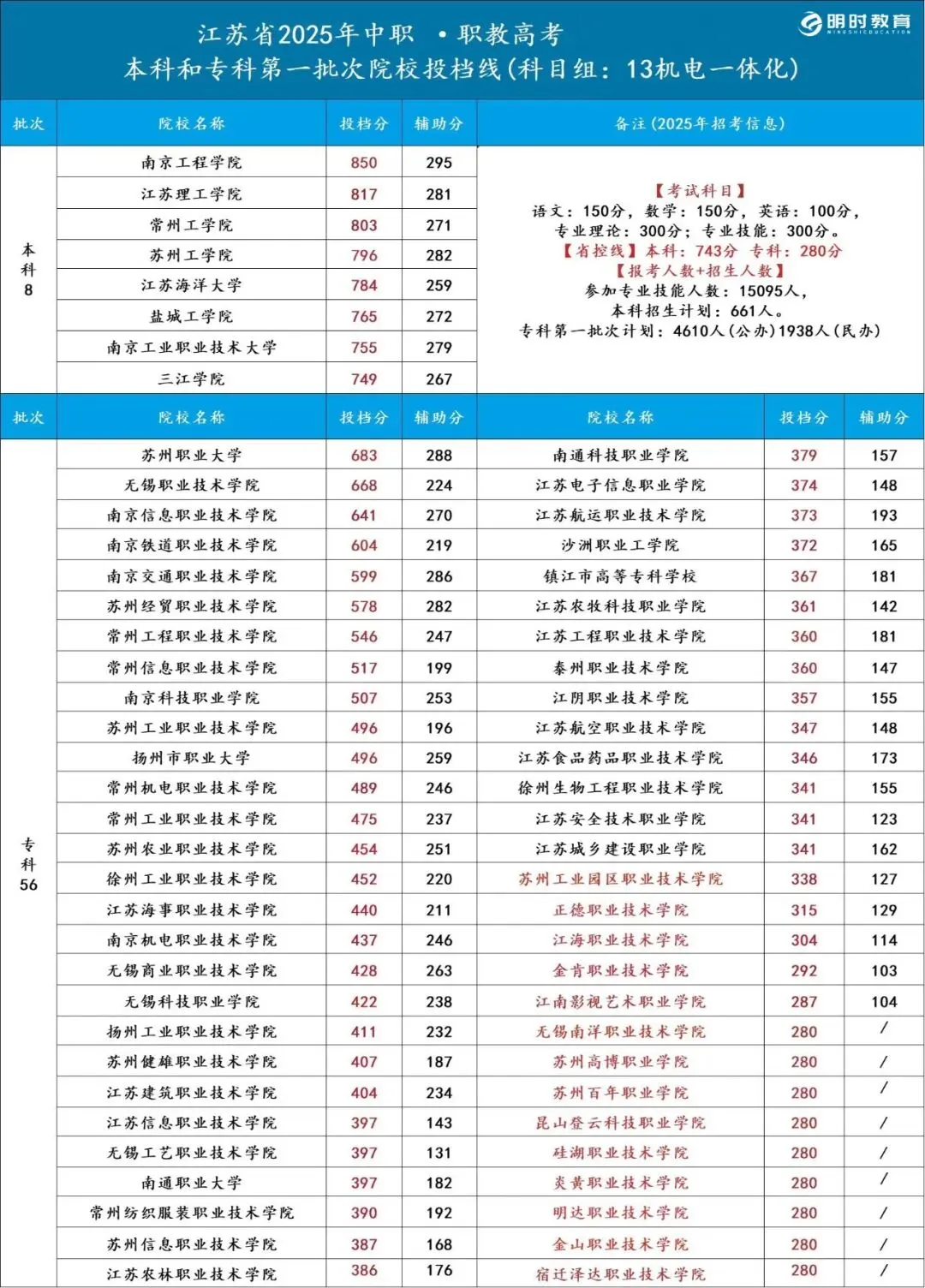 >25江苏职教高考各科目组院校录取分数线汇总!
