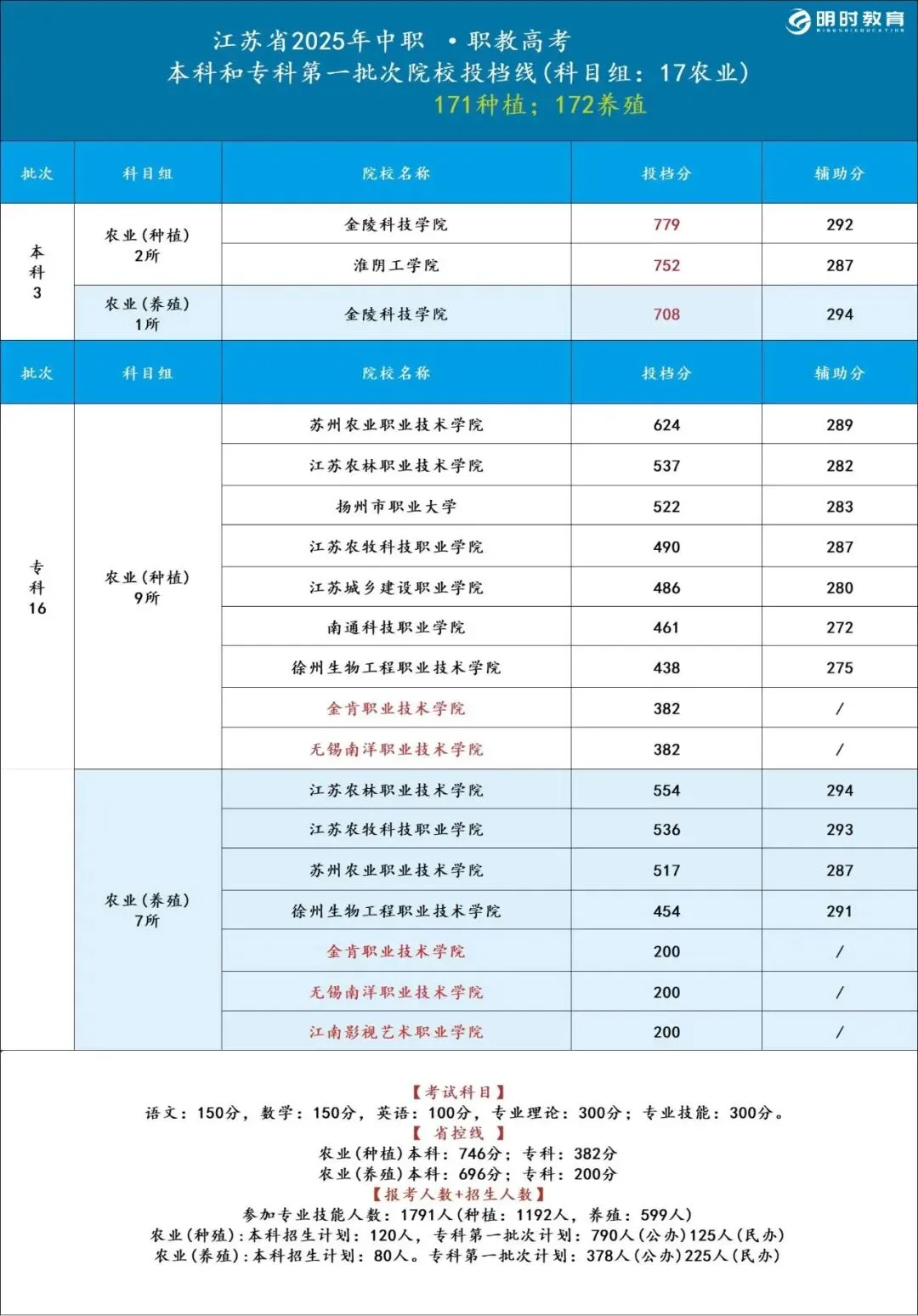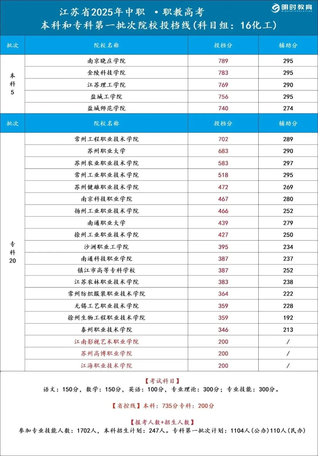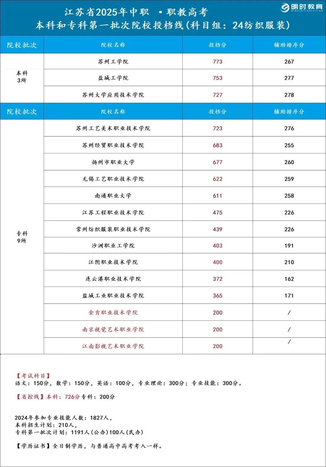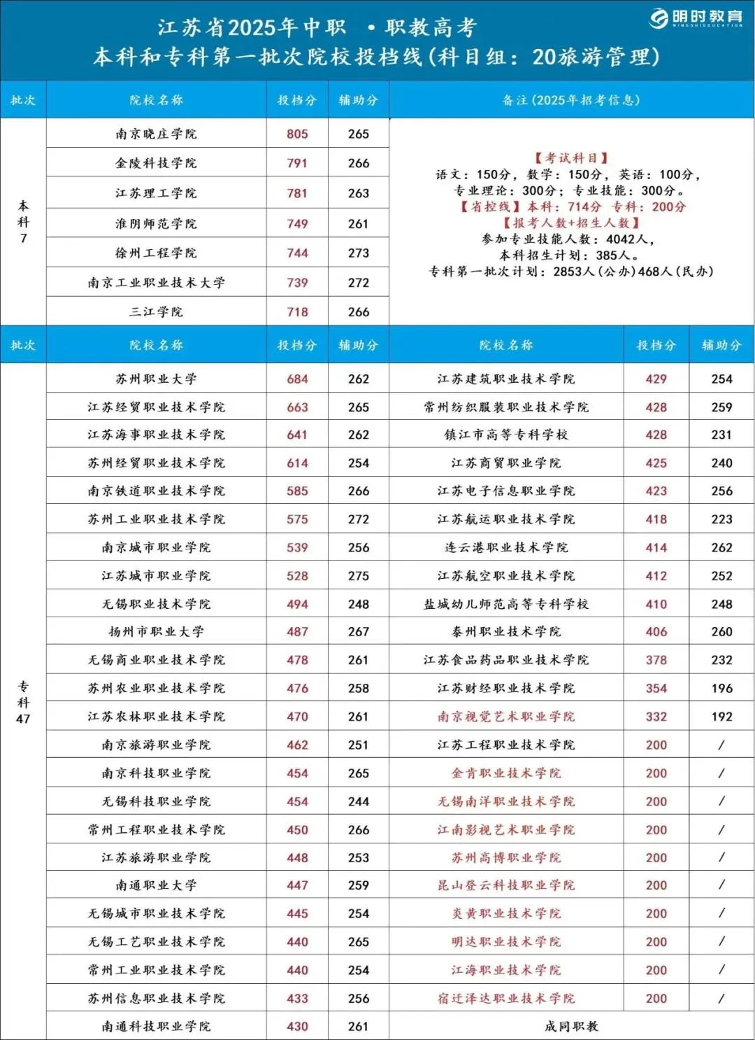 >25江苏职教高考各科目组院校录取分数线汇总!