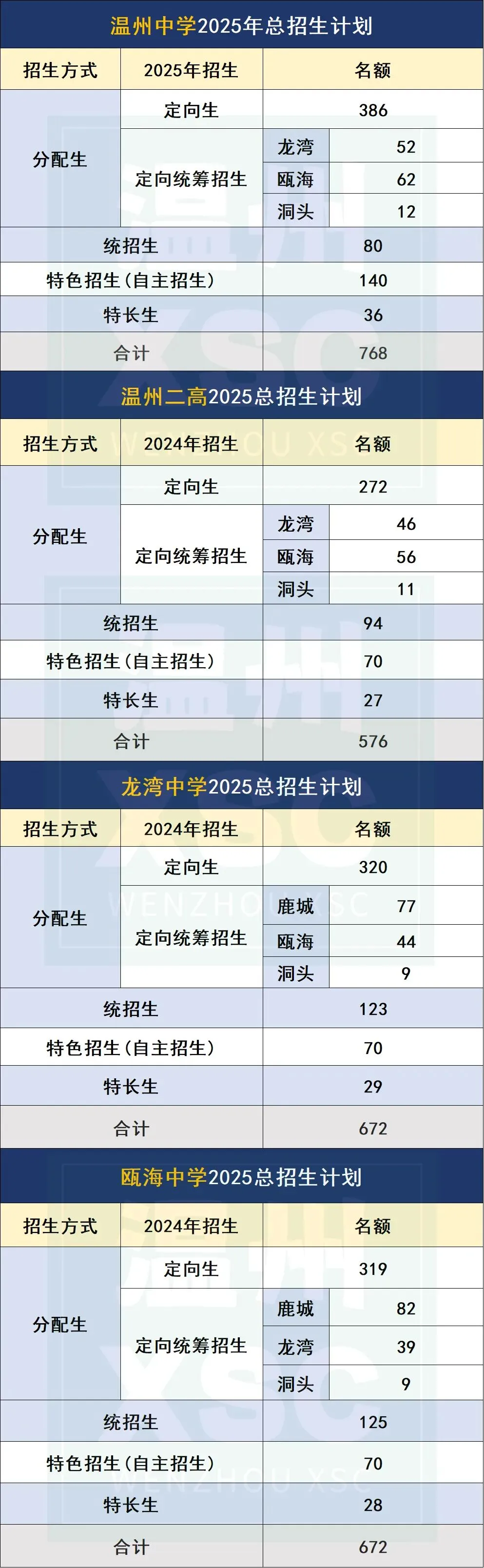 温州4所重点高中2025年定向生名额分配