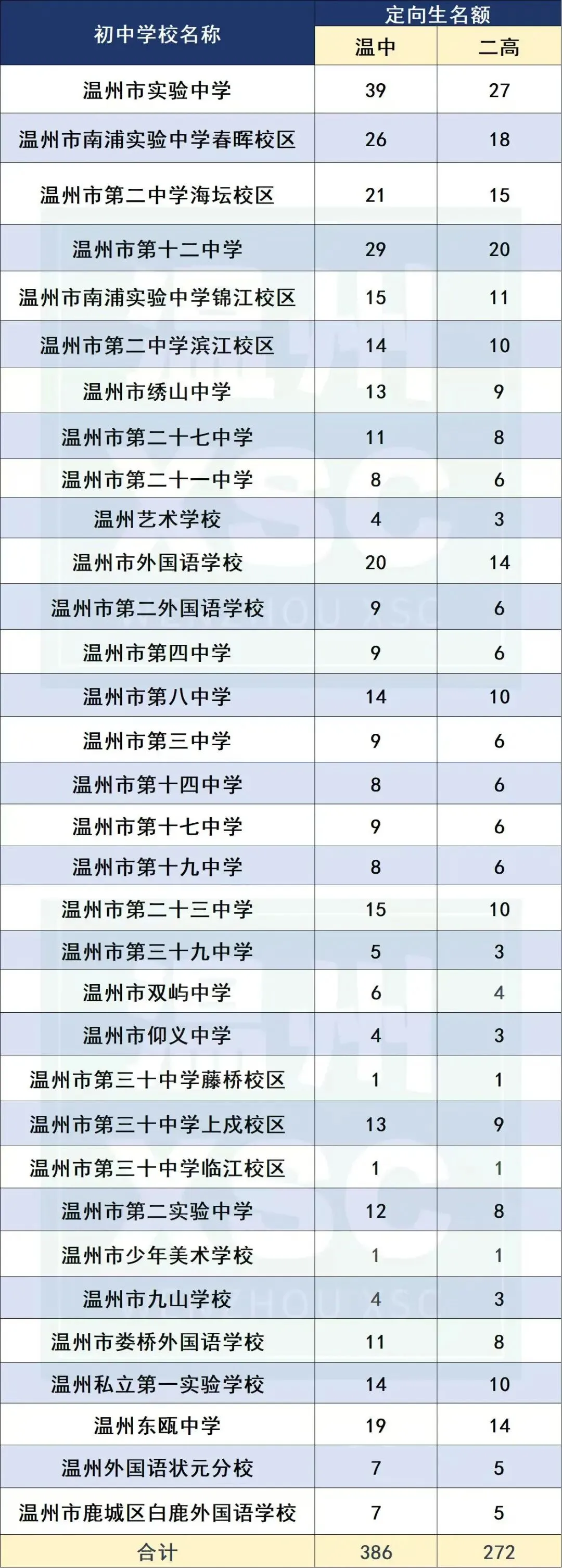 2025年(温中+二高)定向生名额分配