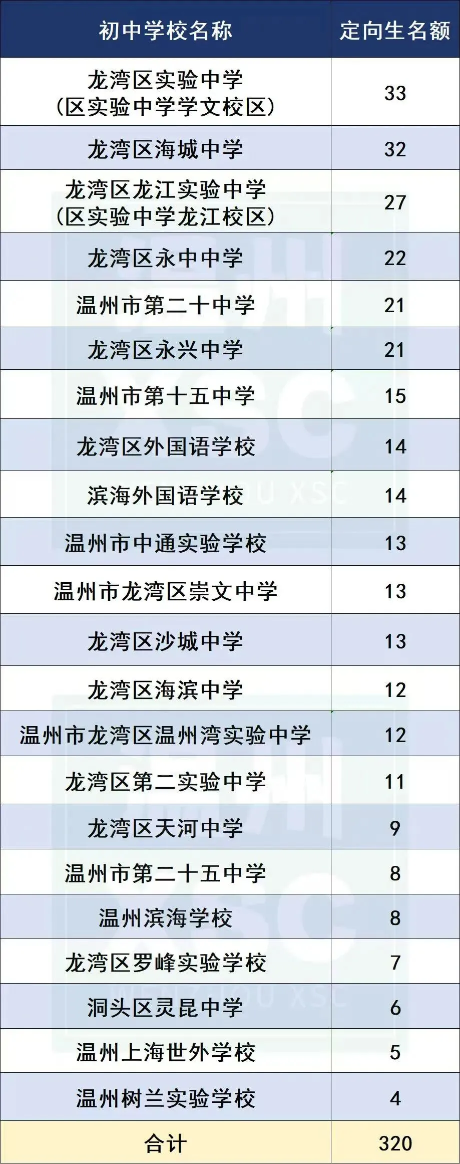 2025年龙湾中学定向生名额分配