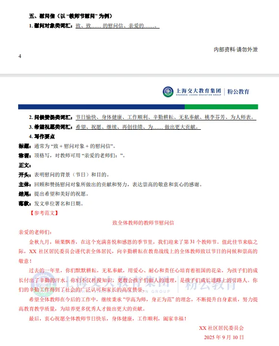 👉应用文写作高频文中规范词要点及范文(慰问信)
