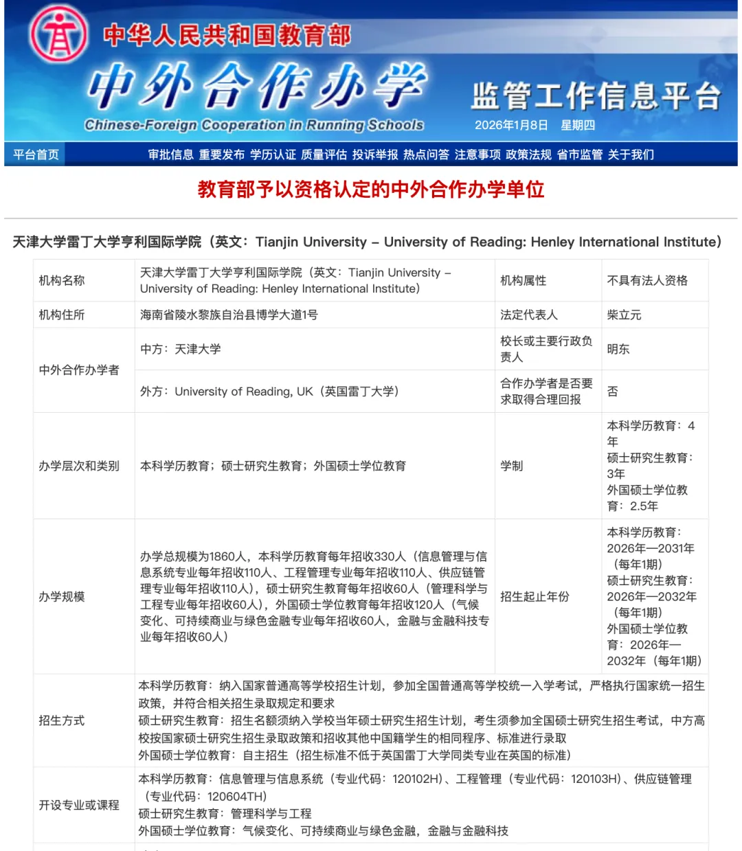 天津大学雷丁大学亨利国际学院是由天津大学与英国雷丁大学合作举办的中外合作办学机构,位于海南陵水黎安国际教育创新试验区。