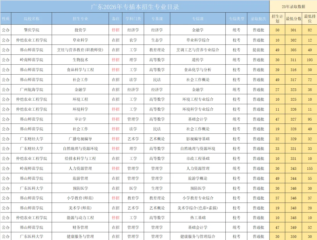 在广东专插本里,“高分冲热门,低分捡公办”从来不是空话。这些分数线低于350分的公办专业,就是给基础一般、想稳上本科的考生量身定制的机会!