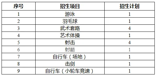 2.运动训练专业优秀运动员保送招生项目及招生计划: