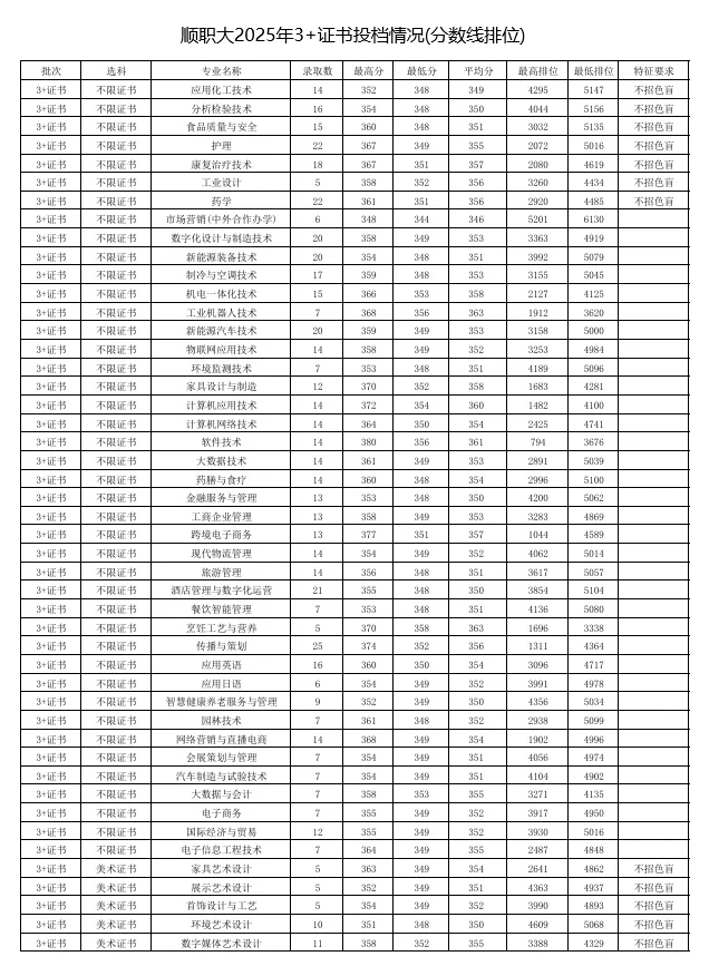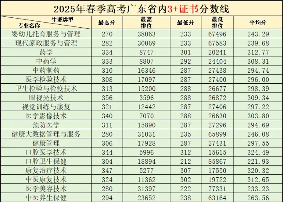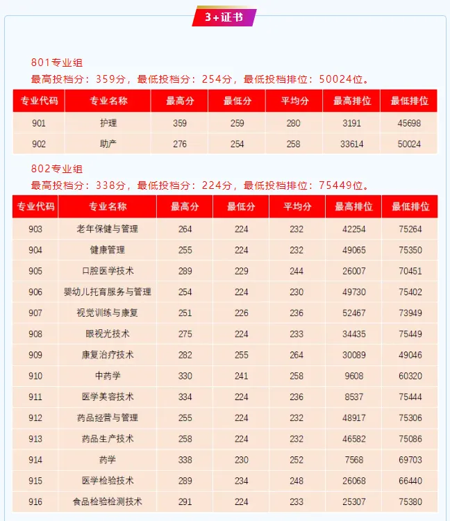3+证书录取最高分为:356分,专业为:眼视光技术