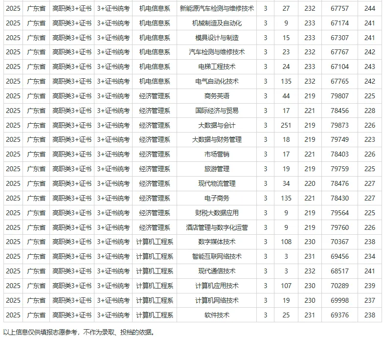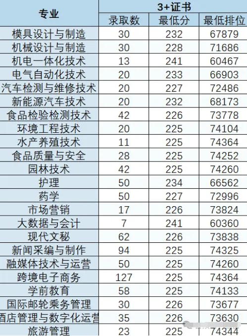 3+证书录取最高分为:239.24分,专业为:机电一体化技术