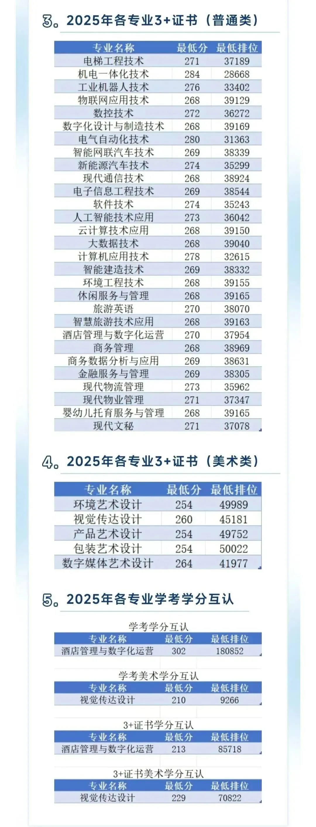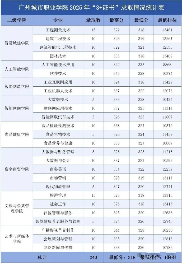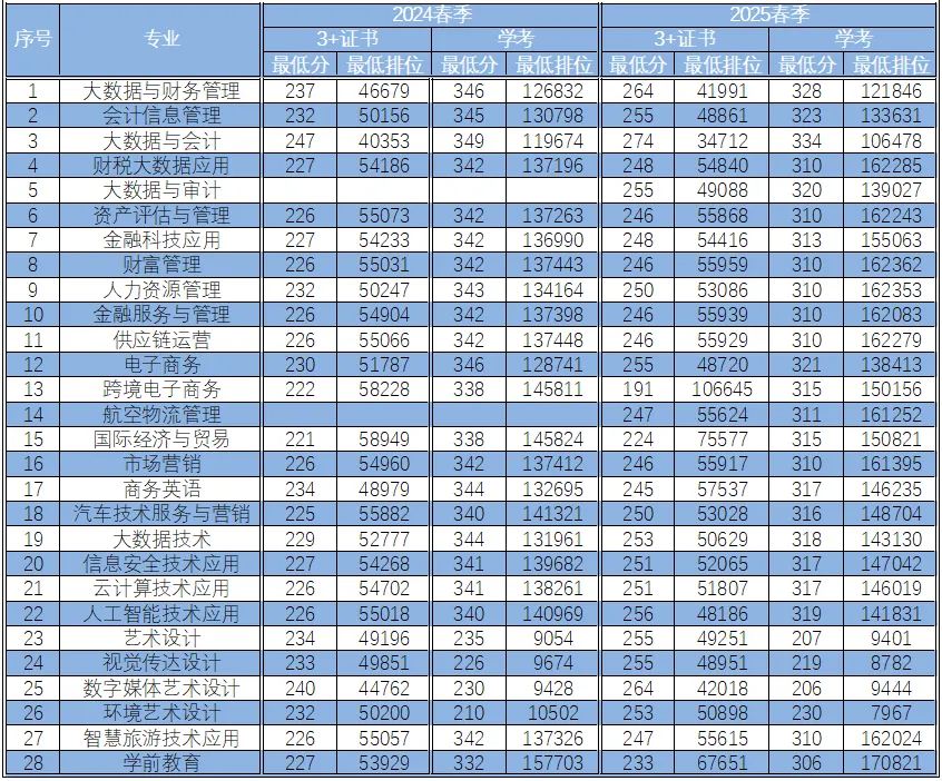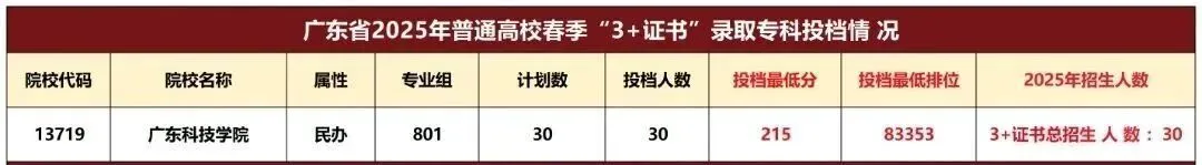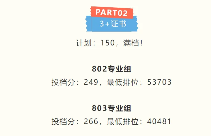 3+证书录取最高分为:215分
