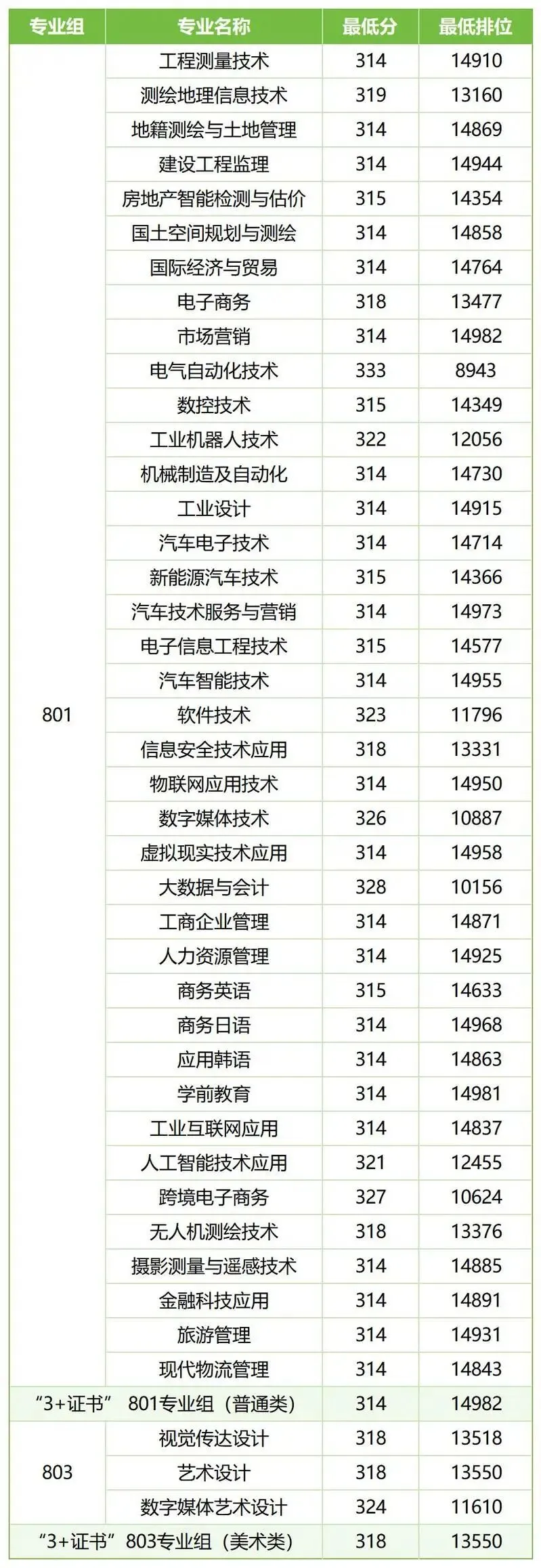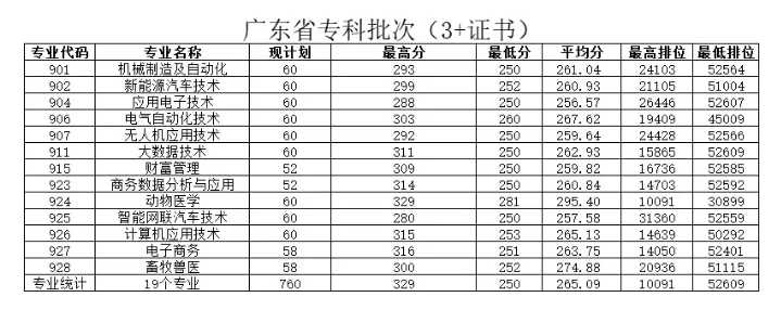 3+证书最高录取平均分为333分,为电气自动化技术专业。