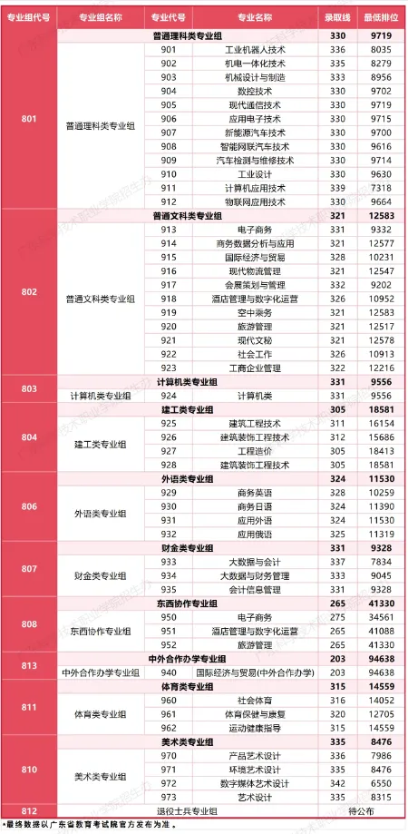 最低录取平均分为290.03分,为土木工程检测技术专业。