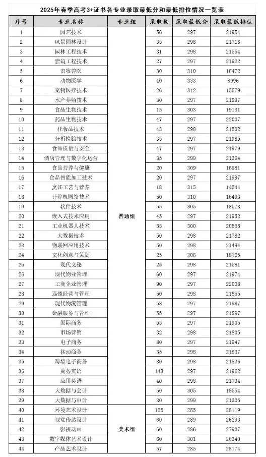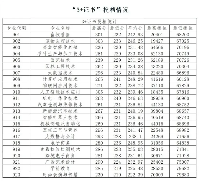 3+证书录取最高分为:303分,专业为:宠物医疗技术
