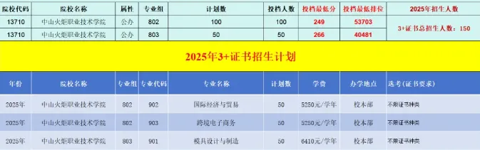 3+证书录取最高分为:253分,专业为:机电一体化技术