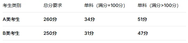 总分和单科都需过线,若未过A区但过B区,可调剂至B区。