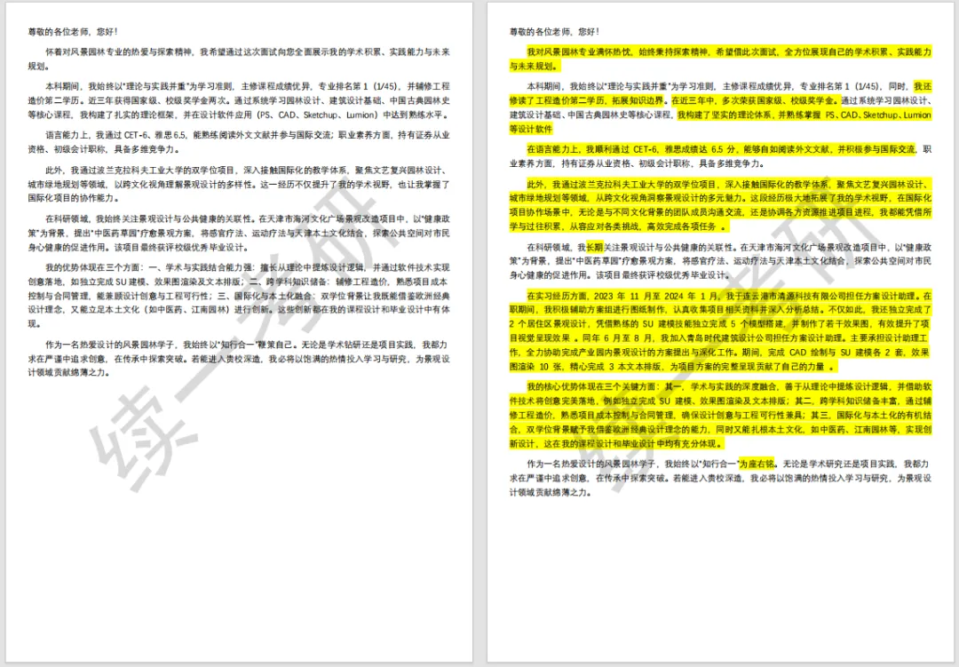 1对1逐句修改面试自我介绍,帮您量身定制一篇漂亮的自我介绍,充分挖掘亮点,让导师眼前一亮。