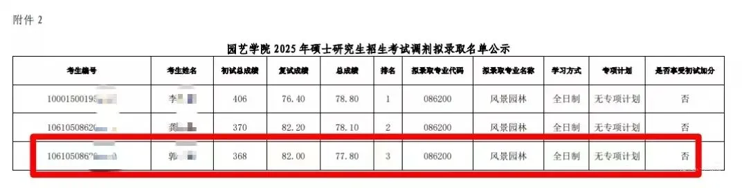 据不完全统计,2025复试调剂学员收到林科院、深圳大学、中南林业科技大学、北京建筑大学、仲恺农业工程学院、天津大学、湖南农业大学、安徽农业大学、广西艺术学院、西南民族大学、中国农业大学、福建理工大学、桂林理工大学、南京林业大学、四川农业大学、广东工业大学、安徽科技学院、青岛农业大学、绵阳师范学院、西北农林科技大学、南京工程学院、沈阳建筑大学等高校的复试通知。